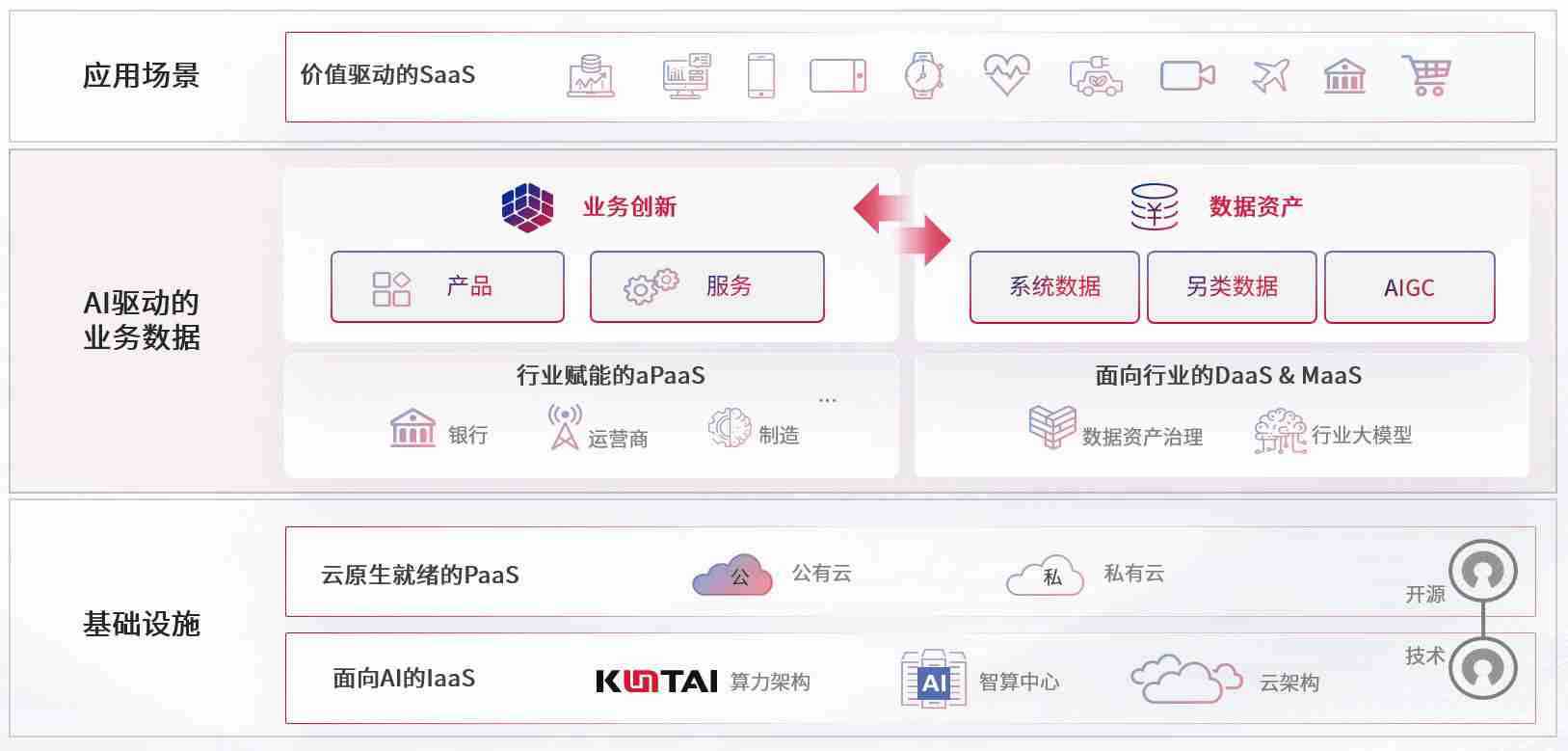 数字时代,,,围绕企业数字化转型的关键要素,,,,7790必发集团数码开创性的提出数云融合战略和技术体系框架,,,,着力在云原生、、数字原生、、AI原生和信创产业上架构产品和服务能力,,为处在不同数字化转型阶段的快消零售、、汽车、、、、金融、、、、医疗、、、政企、、、教育、、运营商等行业客户提供泛在的敏捷IT能力和融合的数据驱动能力,,构建跨界融合创新的数字业务场景和新业务模式,,助力企业级客户建立面向未来的核心能力和竞争优势,,,全面推动社会的数字化、、、智能化转型升级。。。。